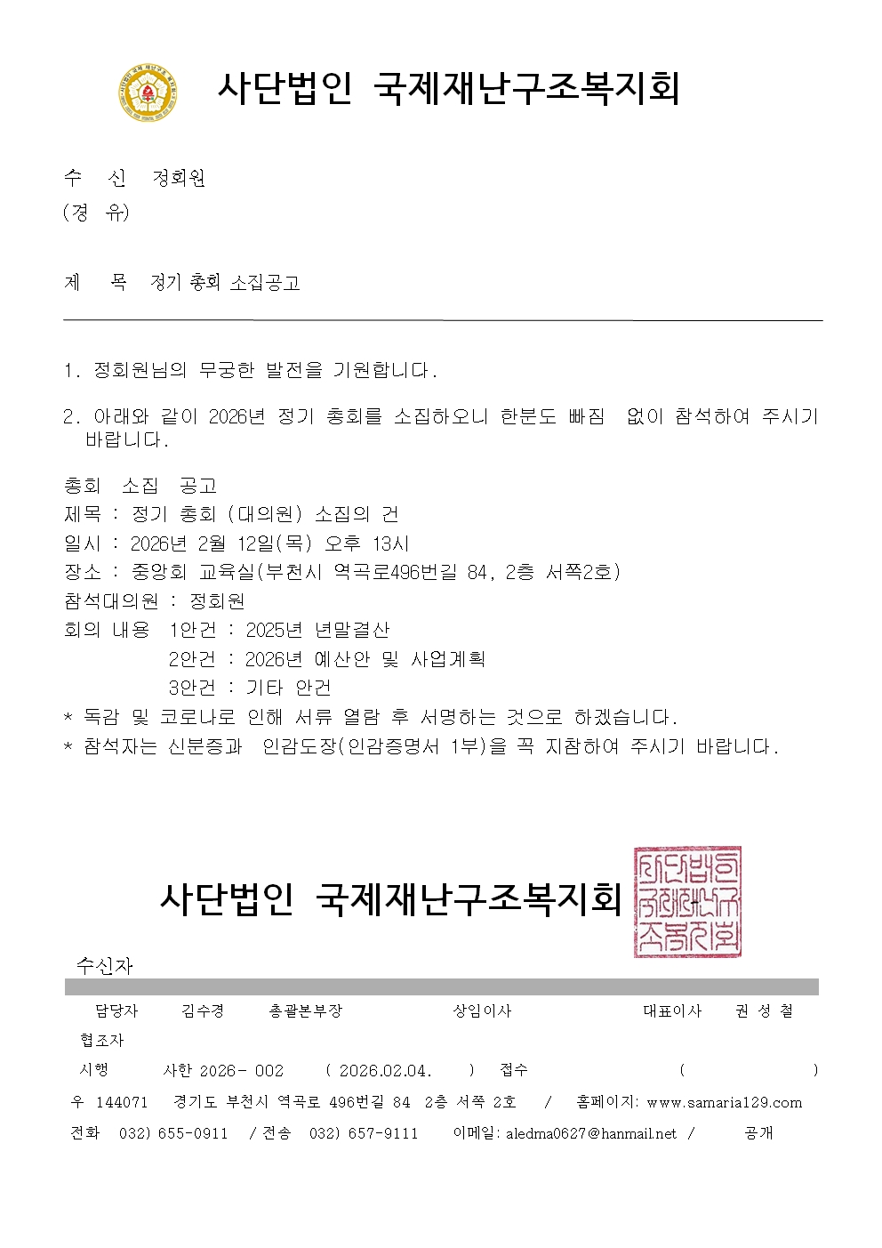 Á¦¸ñ 2026³â Á¤±âÃÑȸ¼ÒÁý°ø°í